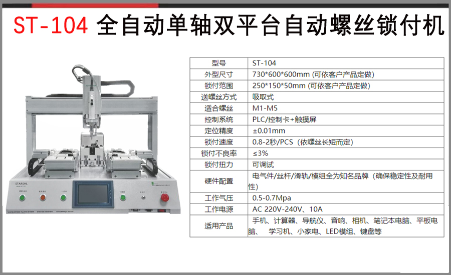 全自动单轴双平台自动螺丝锁付机